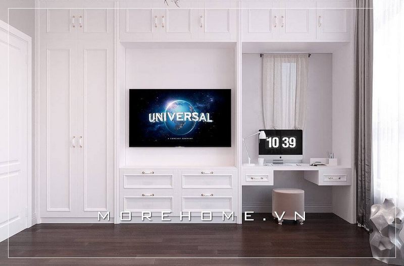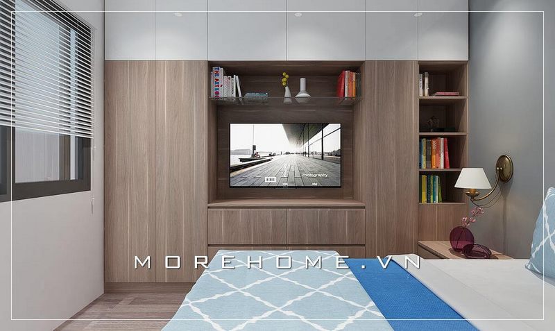 Tủ quần áo đa năng tích hợp kệ ti vi treo tường mang đến không gian phòng ngủ tiện dụng và sang trọng hơn