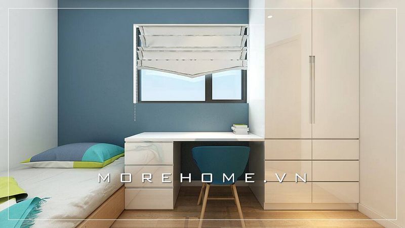 Tủ quần áo cánh mở hiện đại tích hợp với kệ trang trí và bàn học mang lại sự thoải mái nhất cho người sử dụng