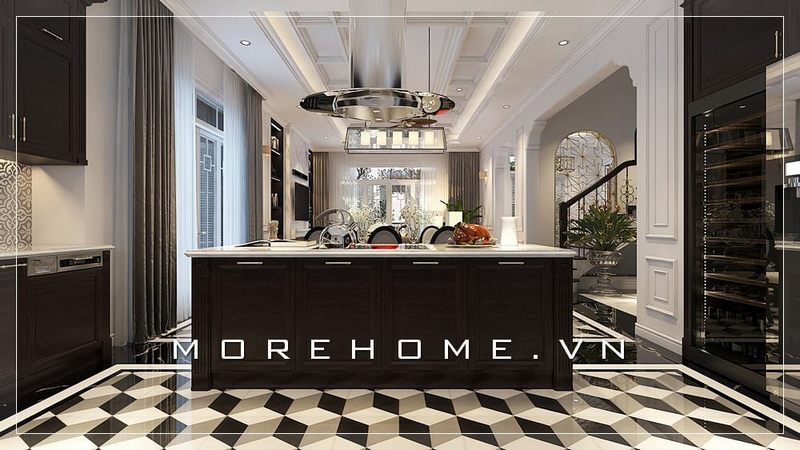 Thiết kế nội thất phòng bếp biệt thự tân cổ điển sang trọng, tiện nghi và đẳng cấp