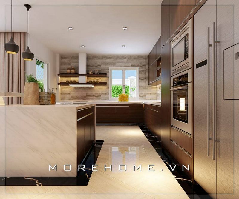 Thiết kế nội thất phòng bếp hiện đại, trẻ trung và tiện nghi cho nhà biệt thự