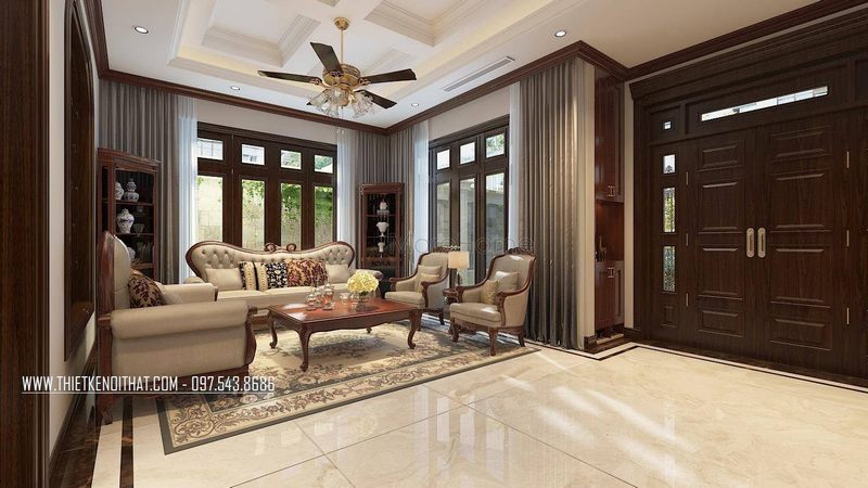 Mẫu cửa chính phòng khách gỗ tự nhiên sang trọng, đảm bảo chắc chắn và tiện nghi trong quá trình sinh hoạt, sử dụng